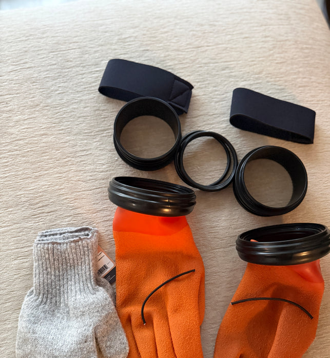 Our Complete Dryglove System delivers reliable thermal protection and dexterity for extended cold water diving operations. This professional-grade setup combines high visibility Signal Orange, Heavy-Duty outer gloves with insulating wool liner gloves, maintaining hand warmth and tactile sensitivity in demanding subsea conditions. Attachment rings are machined from solid blocks of Delrin to eliminate the flexing, common on other systems, that lead to failure and wet hands. Not only essential for technical diving, these gloves are recommended for all drysuit divers who dive in old waters. This system will contribute to prolonged bottom times in frigid environments where hand protection directly impacts safety and performance.